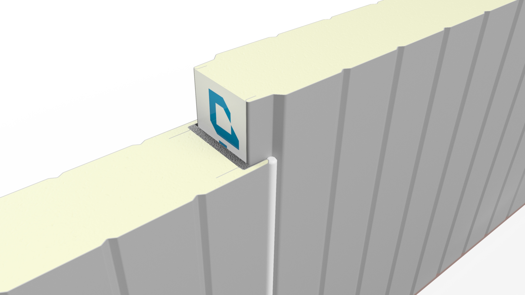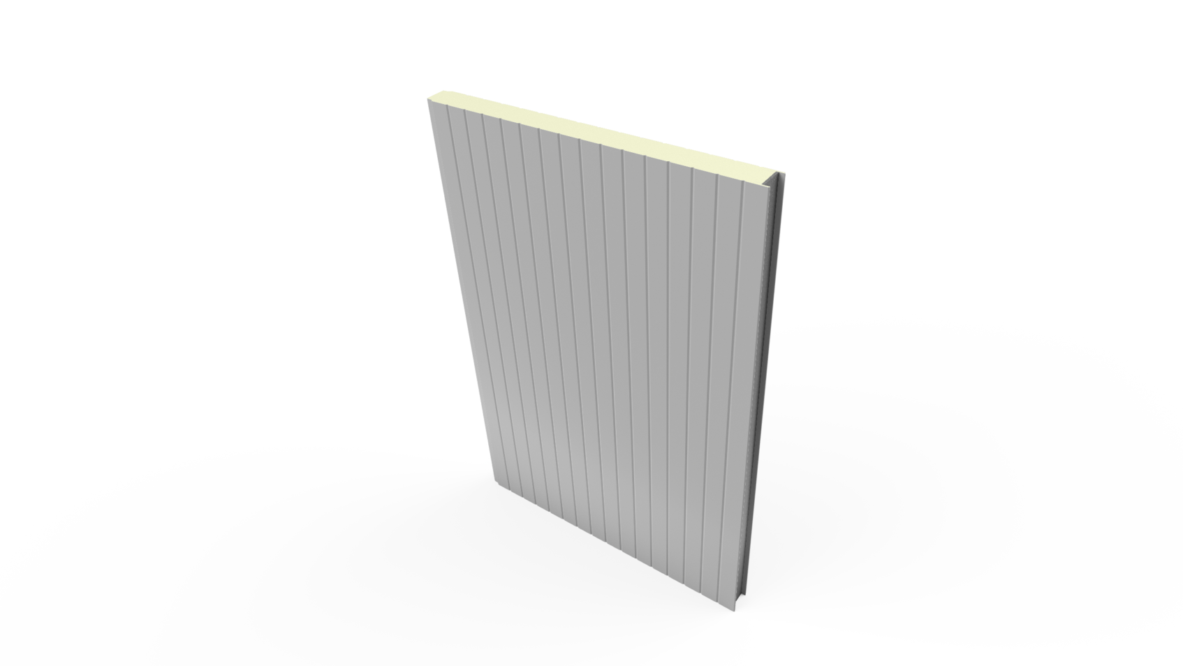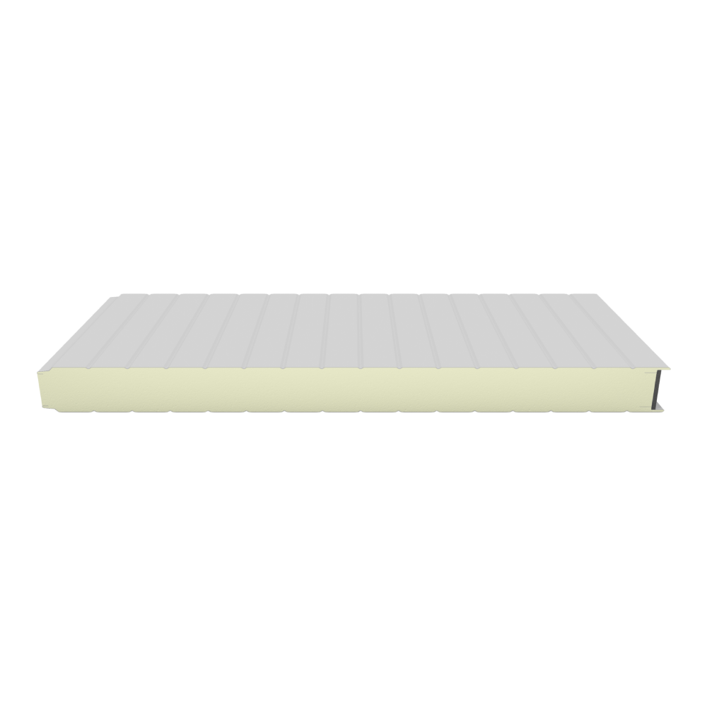 Panel para cielos y muros de cámaras frigoríficas tipo sándwich, inyectado en línea continua con poliuretano expandido de alta densidad empacada (40 + 2 kgs/m³ empacada) y con ambas caras con lámina de acero galvanizada prepintada.